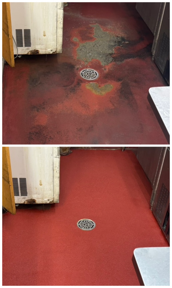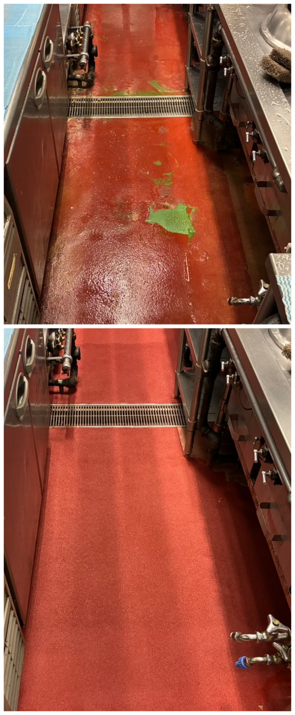 厨房床の防滑工事例 飲食店(グレーチング通路)
