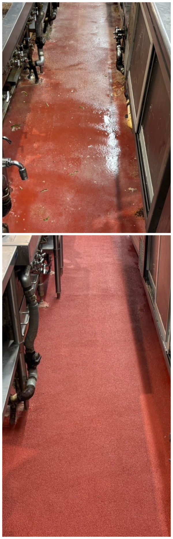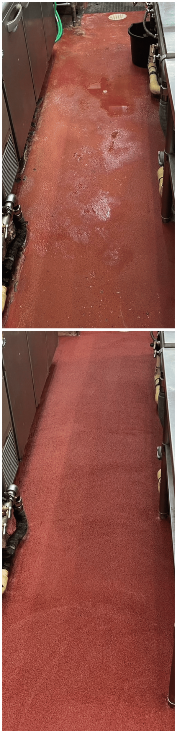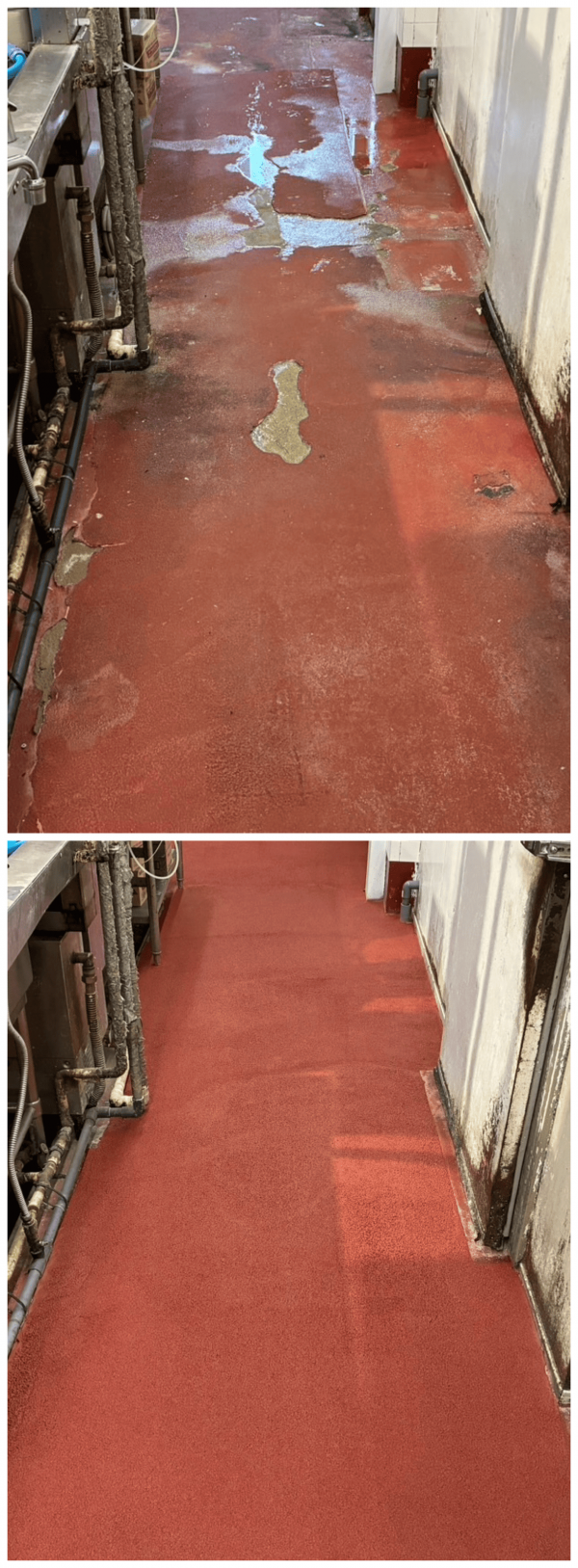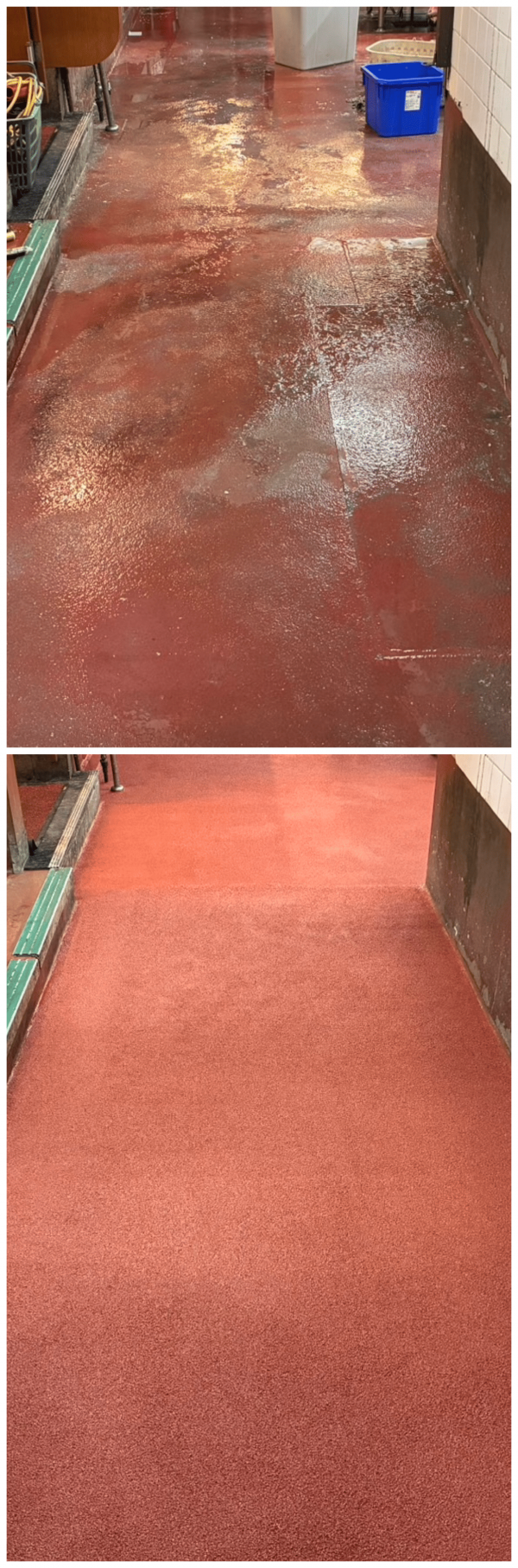 厨房床の防滑工事例 飲食店(グレーチング通路)